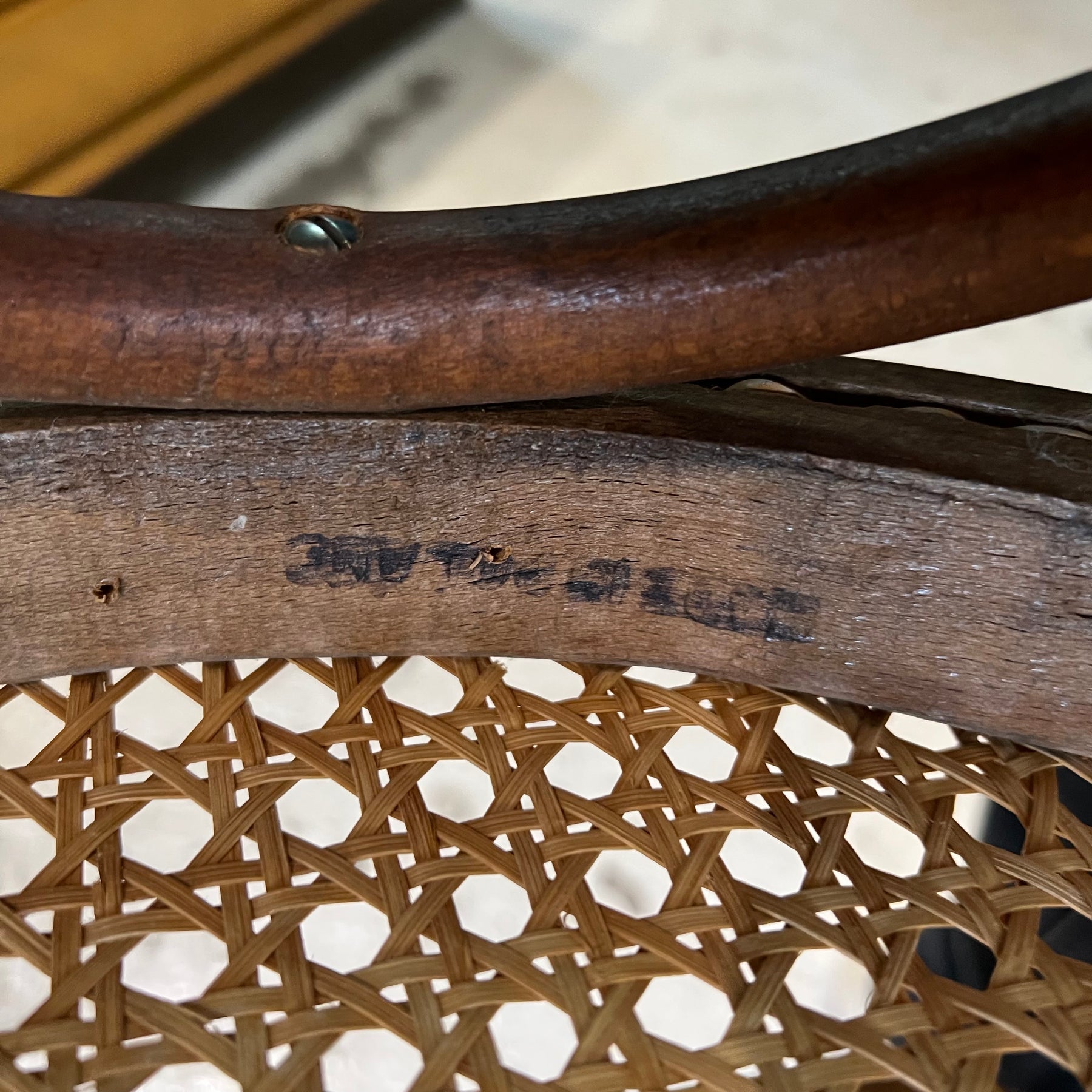 Beautiful antique Romanian-made Thonet bentwood armchair with perfect caning. Two available. Both are sturdy and clean, but do exhibit wear to the finish, especially the arms and tops of the backrests.